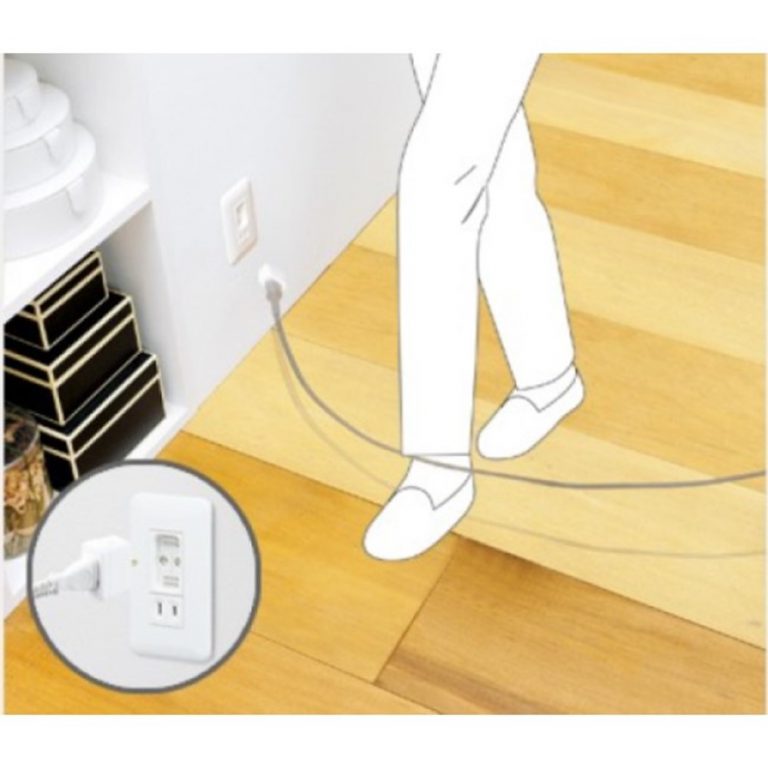 マグネットコンセントは、「コードに足を引っかけて転んでしまう」というありがちな危ないシチュエーションに有効なコンセント。先端にマグネット付きアダプターがあり、万が一コードに引っかかっても、ぽろっと外れて転倒を防ぐ設計になっています。
