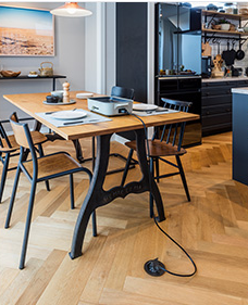 ダイニングテーブルで卓上ホットプレートを囲んで夫婦の食事を楽しみたい。リビングのソファでくつろぎながら、手元でスマートフォンを充電したい。そんな時、フロアコンセントがあれば、延長コードを這わせることなく、自由な暮らし方が実現します。